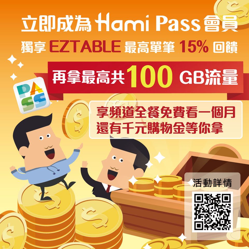 預訂即享有中華電信 Hami Pass 會員專屬優惠,餐餐加碼EZCASH 回饋!