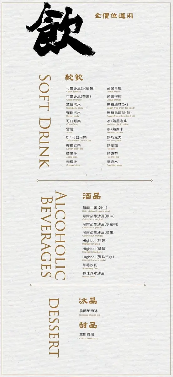-幼童 ( 5 歲以下):免費用餐 (酌收清潔費 $250 ) - 用餐時間 120 分鐘 / 點餐時間 90 分鐘 (單人用餐僅限平日午間時段)
