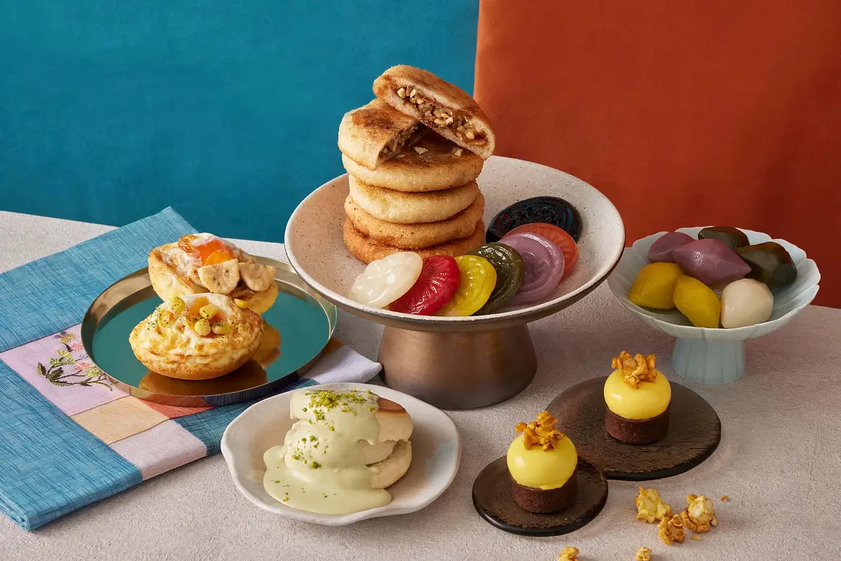 「韓式堅果糖餅」外酥流心、「明洞雞蛋糕」蓬鬆蛋香、「巧克力軟餅乾」熱烘微融、「開心果生乳夾心舒芙蕾鬆餅」綿密清香、「草莓優格霜淇淋」酸甜爽口、「香緹玉米塔」清甜獨特。